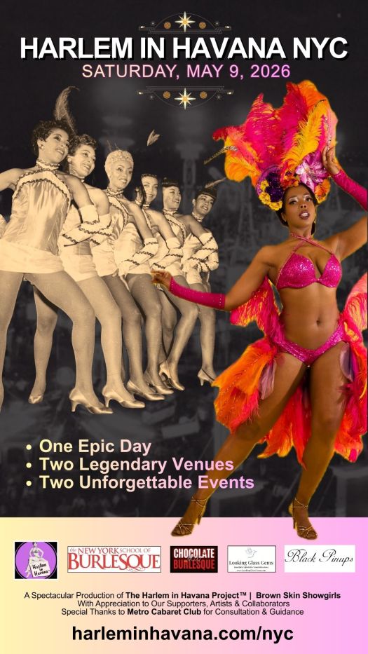 Harlem in Havana NYC is supported by The New York School of Burlesque, Looking Glass Gems, Chocolate Box Burlesque, and Black Pinups Magazine.