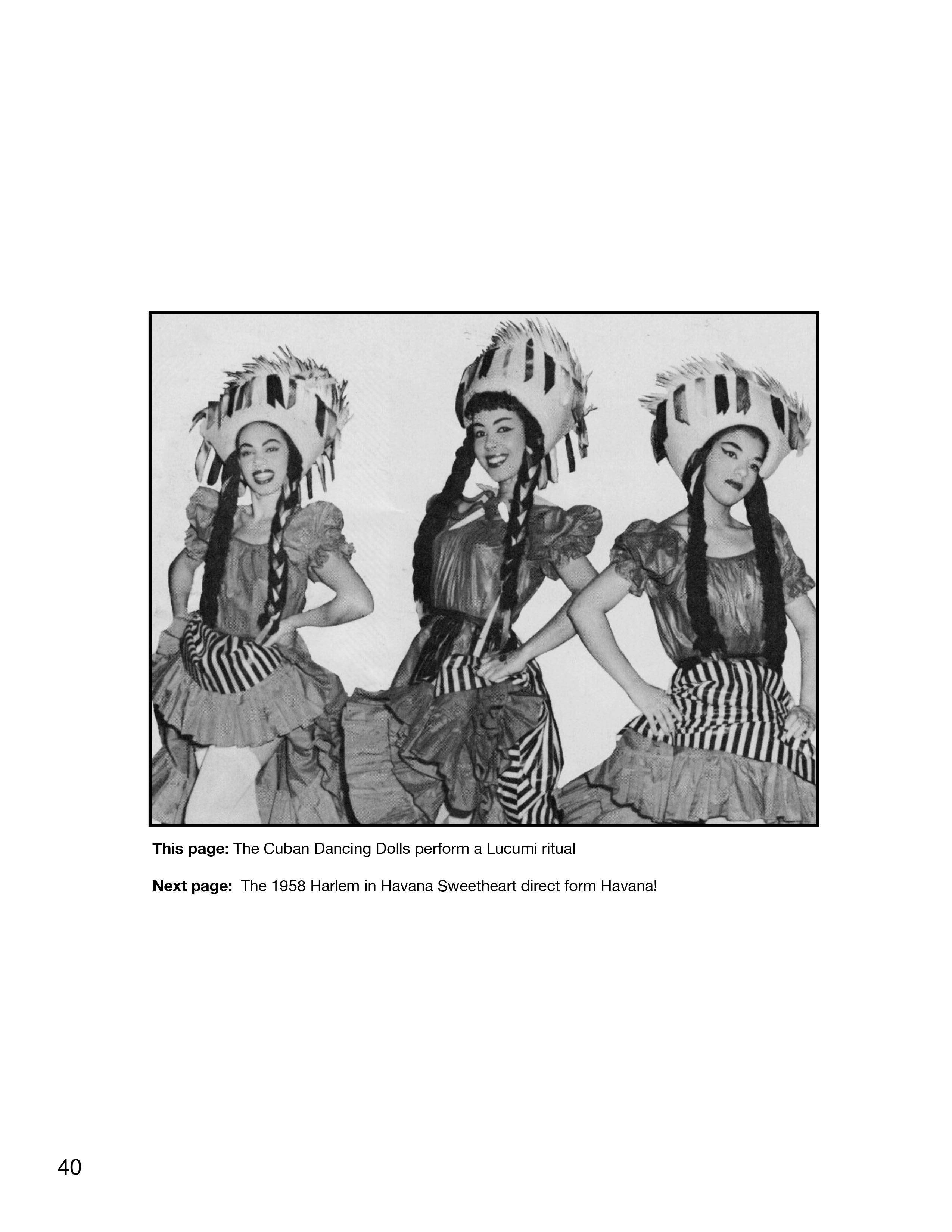 In the 1950s, just before the Cuban Revolution, Leon Claxton’s Harlem in Havana showcased a powerful cultural alliance between Black and Cuban nationalists. The revue’s stars included the Cuban Dancing Dolls, a sizzling troupe whose precision moves and sequined glamour embodied Havana’s nightlife, and Mercedes Valdés, a powerhouse Santería singer who carried the deep spiritual rhythms of Afro-Cuban tradition.