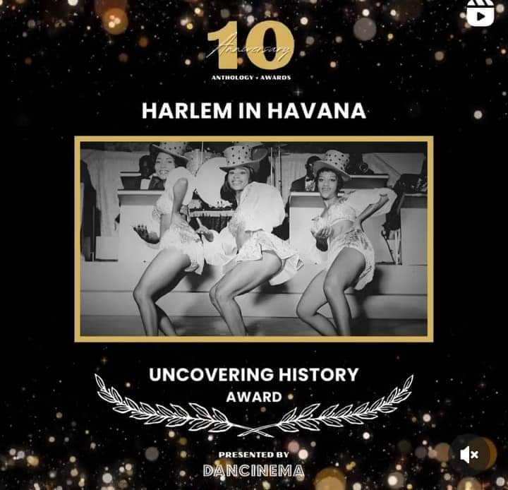 Capitol Dance & Cinema Festival– February 2024- In celebration of Dancinema’s 10th anniversary, we’re revisiting the archives by sharing awards & acknowledgements for some of the most memorable dancefilms, as voted by our programming panel. Today’s highlight is HARLEM IN HAVANA – Uncovering History Award! Congratulations to Leslie Cunningham and her team on this important look at Leon Claxton’s Harlem in Havana traveling jig show that broke records and boundaries during its 1940s-1960s run. We appreciate this uncovering of history to highlight the entrepreneurship, creativity, and groundbreaking success of Leon Claxton. Visit Capitol Dance & Cinema Festivalto learn more.