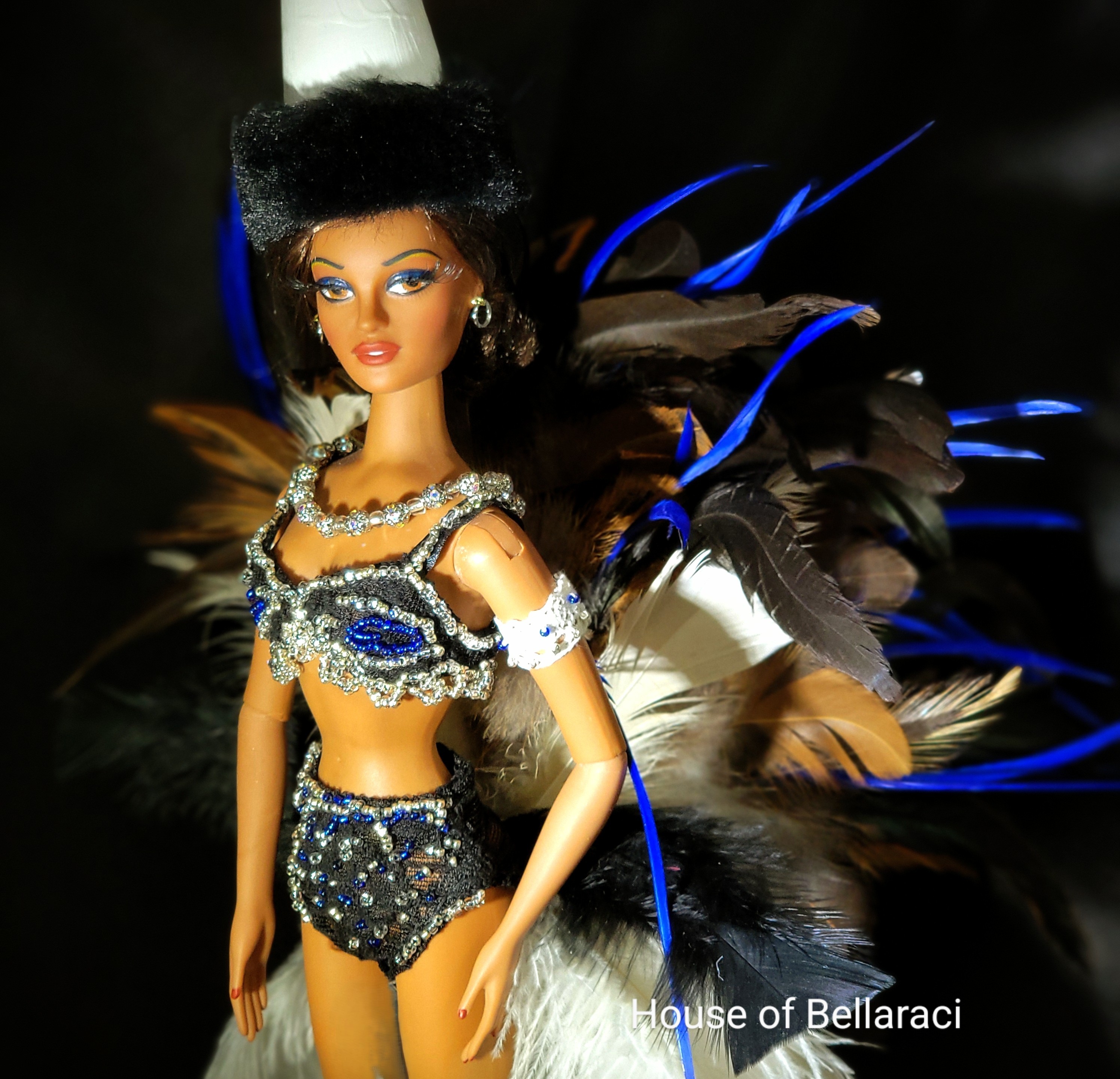 To help bring the Brown Skin Showgirls exhibit to life, doll collector and fashion artist Traci Cunningham, founder of House of Bellaraci, has recreated iconic show images in 17-inch doll form. Each costume is drafted and hand-beaded, staying true to the craftsmanship of the era’s designers. “Black children and collectors deserve dolls that represent them. I love bringing these little treasures back to life for all to enjoy,” she says.